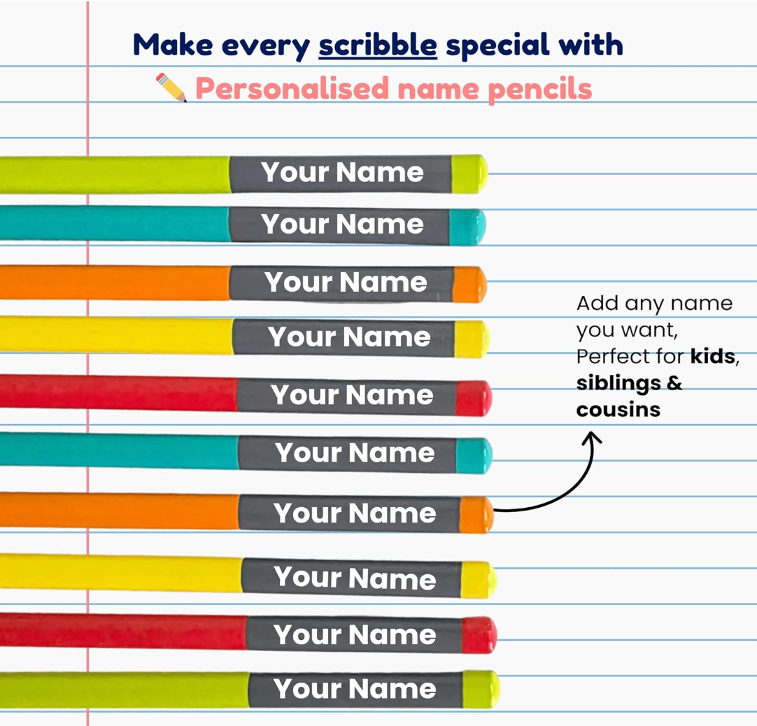 - These customised pencil for kids name reduce pencil loss and mix-ups in classrooms and school bags