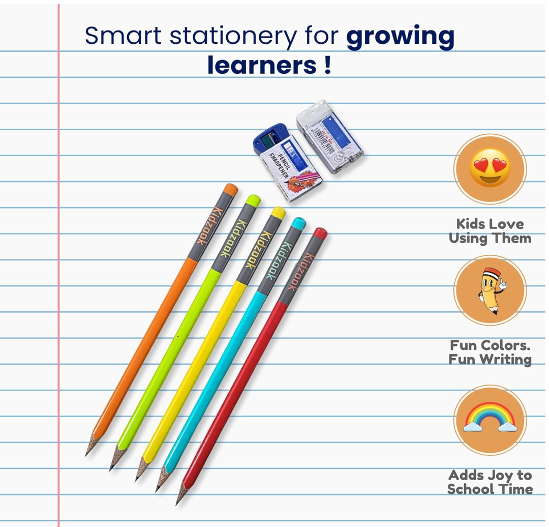 - Includes one eraser and one sharpener inside the box, making it a complete stationery set for kids